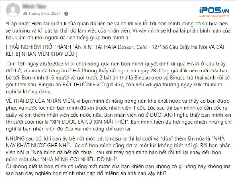 Vậy khi đối mặt với một sự cố dù lớn hay nhỏ nhưng đã bị bóc phốt trên MXH, thương hiệu F&B nên làm gì để xử lý khủng hoảng truyền thông? Hãy cùng iPOS.vn nghiên cứu 5 case khủng hoảng gần đây nhất và rút ra bài học nhé!