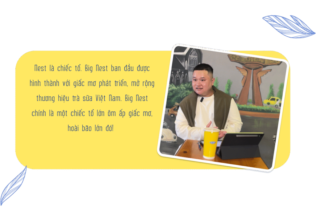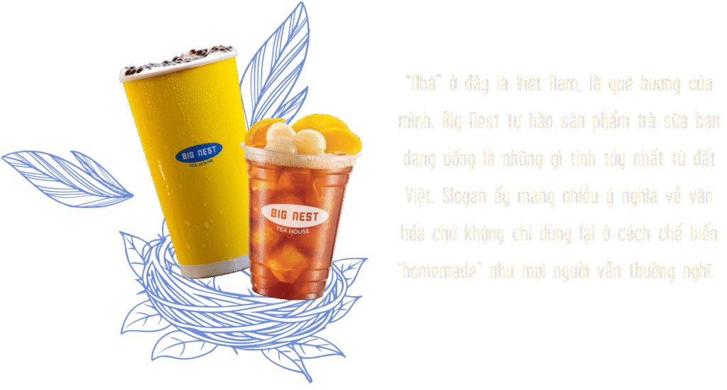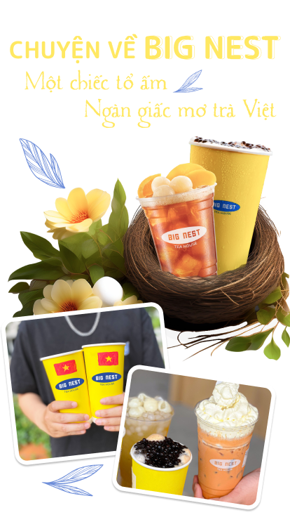 Một quán trà sữa có chỗ ngồi với view đẹp, cho bạn thưởng thức một cốc trà ngon mà lại có giá “cực mềm”. Tất cả tưởng như là “tiêu chuẩn kép” cần có được của các quán trà sữa để chiều lòng giới trẻ. Thương hiệu chuỗi quán trà sữa Big Nest đang làm điều đó để chinh phục một giấc mơ lớn: Đó là mang những sản phẩm “Trà sữa nhà làm” đến gần hơn mọi khách hàng, cùng niềm tự hào về 1 ý tưởng: “Big Nest  là sản phẩm trà nhà, “rất Việt” - dành cho người Việt. Tự hào “chất Việt”.