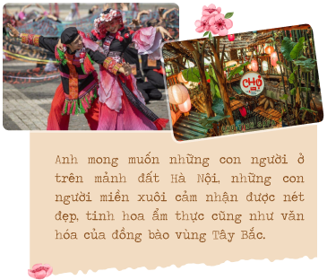 Khi đã dành tình yêu cho Tây Bắc, yêu con người và tất cả mọi thứ ở nơi đây, anh mong muốn mang những điều đẹp đẽ nhất của Tây Bắc đến với thực khách của mình và hy vọng khách hàng sẽ được khám phá một Tây Bắc chân thực nhất tại Chợ Tình Sapa.n