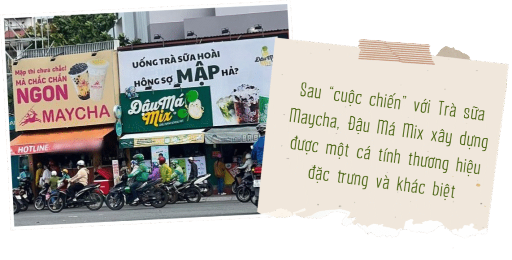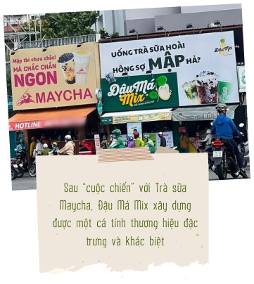 Mặc dù đã xuất hiện trên thị trường F&B 3 năm nay, gần đây Đậu Má Mix mới thực sự gây “tiếng vang” mạnh mẽ trên thị trường nhờ hình ảnh về cuộc chiến biển quảng cáo trên đường Điện Biên Phủ - Sài Gòn với Trà sữa Maycha.