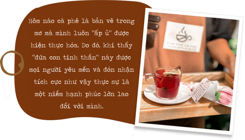 Hơn nữa, vì đã có kinh nghiệm mở quán cà phê trước đó rồi nên mình cũng khá vững tâm khi quyết định mở thêm một thương hiệu quán cà phê mới trong thời điểm này. Bởi lẽ, khi mình mới bắt đầu kinh doanh lần đầu tiên thì tình hình cón khó khăn hơn hiện nay rất nhiều. Quán đầu tiên của mình mở đúng thời điểm dịch COVID-19 bùng phát, vừa mở cửa thì đã phải dừng kinh doanh, và đợt nghỉ kéo dài đến gần 1 năm rưỡi. Thời điểm đó, quán phải duy trì mà không có doanh thu hay bất kỳ hoạt động kinh doanh nào.