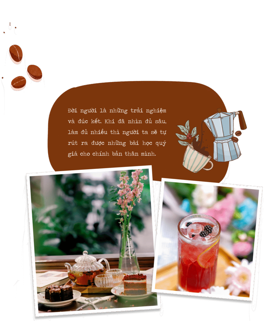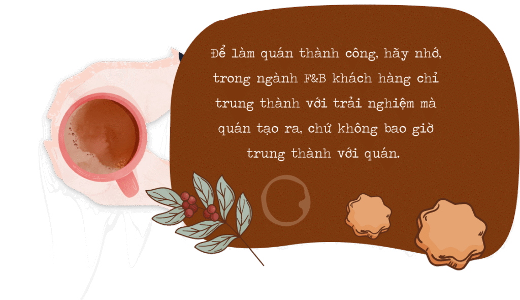 Với kinh nghiệm làm quán và đi cà phê suốt bao năm qua, mình nhận ra rằng đồ uống chỉ chiếm khoảng 20 - 30% lý do khách hàng đến và ở lại lâu dài với một quán cà phê. Vì vậy, bên cạnh chất lượng đồ uống thì mình cũng tập trung khá nhiều nguồn lực vào việc phát triển các dịch vụ còn lại như không gian quán, phong cách phục vụ, bầu không khí,... Ví dụ như khi khách hàng đến quán và được nhân viên phục vụ tận tình hay không gian quán mình “chuẩn gu” của họ thì người ta sẽ có khả năng quay lại cao hơn, thậm chí là ghé thường xuyên và trở thành khách quen. Bởi lẽ những trải nghiệm khách hàng tích cực tại đây sẽ hình thành những ký ức tốt cho mọi người, khiến họ có cái nhìn thiện cảm hơn với quán của mình.