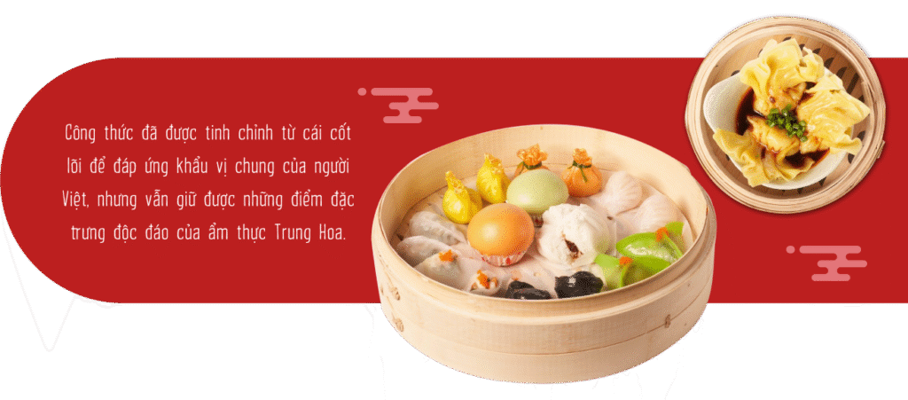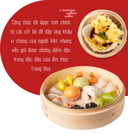 Trong quá trình sáng tạo thực đơn, chúng tôi có tiến hành thực hiện sàng lọc từng món ăn thật kỹ lưỡng để đảm bảo rằng chúng hoàn toàn phù hợp với khẩu vị người dân miền Bắc: ưa chuộng phong cách ẩm thực nhẹ nhàng, thanh đạm và dễ chịu. Bằng cách test các loại món ăn khác nhau, đặc biệt là há cảo và bánh bao, chúng tôi đã chọn ra được những hương vị tinh tế nhất, thấu hiểu sâu sắc vị ngon của ẩm thực Trung Hoa.