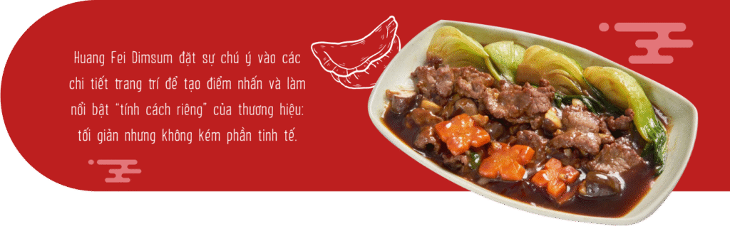 Ví dụ, chúng tôi hiểu rõ người miền Bắc Việt Nam thích ẩm thực thanh đạm nên đã điều chỉnh một số thành phần nguyên liệu để đảm bảo rằng đồ ăn phần nào thỏa mãn được vị giác của khách hàng. Đồng thời, Huang Fei Dimsum cũng tạo ra một menu đa dạng, từ đồ hấp đến đồ chiên, từ dimsum truyền thống đến những món dimsum mùa lễ hội, bắt kịp xu hướng thị trường hiện nay.