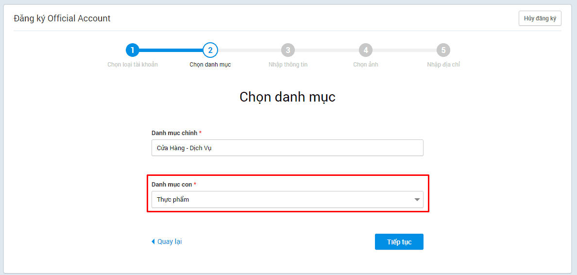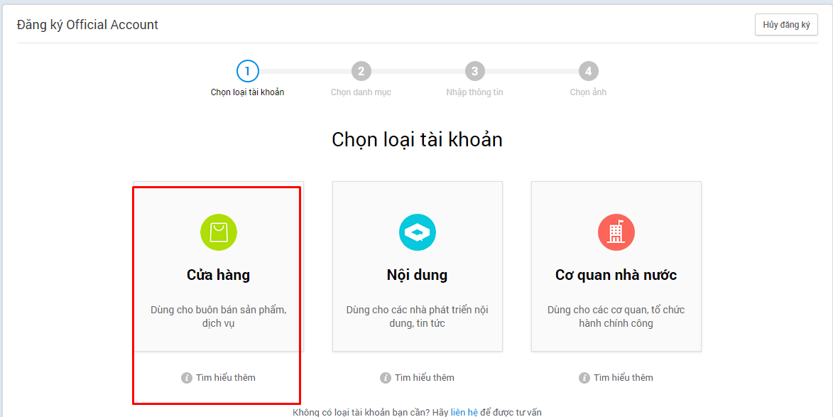 Bước 2: Chọn loại tài khoản “Cửa hàng”