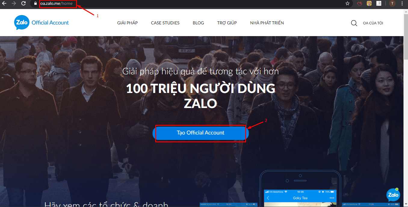 Bước 1: Truy cập oa.zalo.me và Tạo Official Account