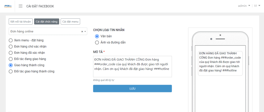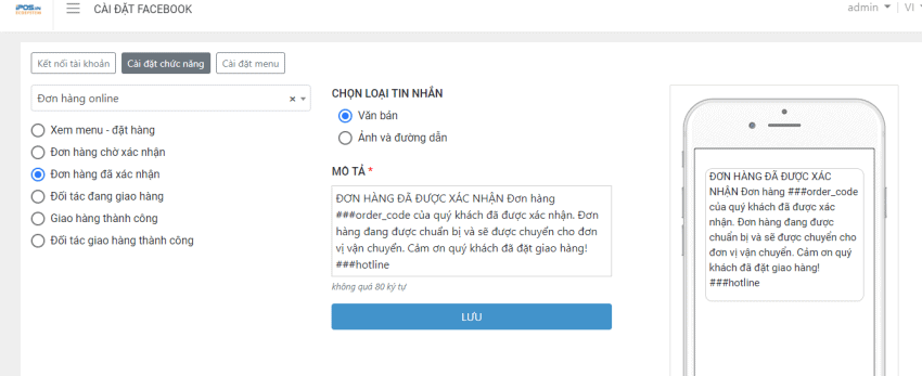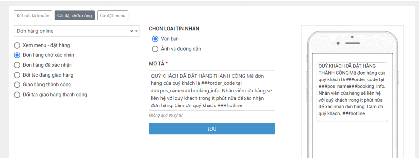 Bước 5: Chỉnh sửa tin nhắn Đặt hàng và Đặt bàn (nếu có)