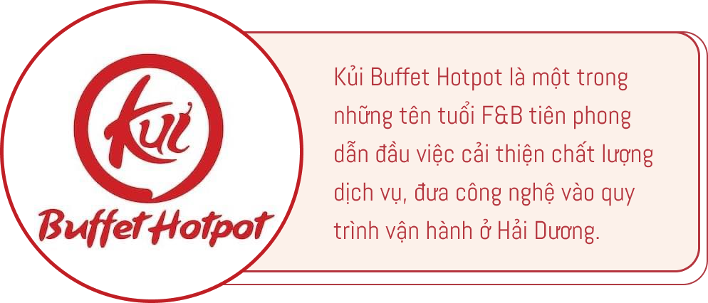 Kủi Buffet Hotpot đang là một trong những tên tuổi F&B tiên phong dẫn đầu việc cải thiện chất lượng dịch vụ, đưa công nghệ vào quy trình vận hành ở Hải Dương. Lần đầu tiên cùng bạn bè đến trải nghiệm tại đây, tôi đã rất bất ngờ vì không nghĩ có một nhà hàng tư nhân mà lại có quy cách phục vụ không kém gì những chuỗi thương hiệu lớn nổi tiếng cả nước.