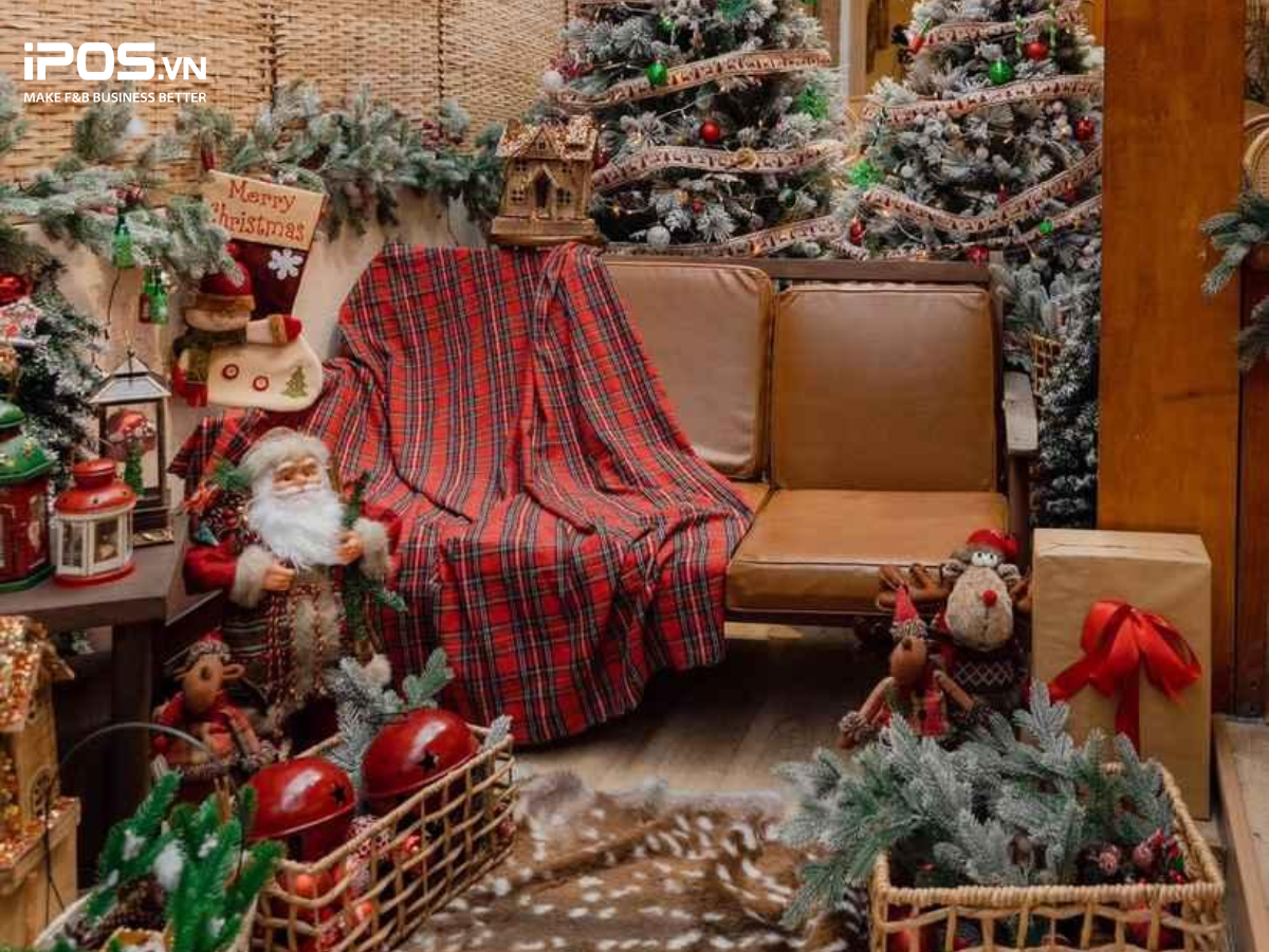 Một góc nhỏ trong quán được trang trí theo phong cách Noel sẽ trở thành điểm check-in thú vị cho khách hàng, và bạn không cần phải tốn quá nhiều chi phí, công sức để tạo ra nó. Một cây thông nhỏ, vài món đồ trang trí, đèn LED hoặc một tấm bảng viết tay với những câu chúc Giáng sinh là đủ để tạo nên một góc ảnh xinh xắn.