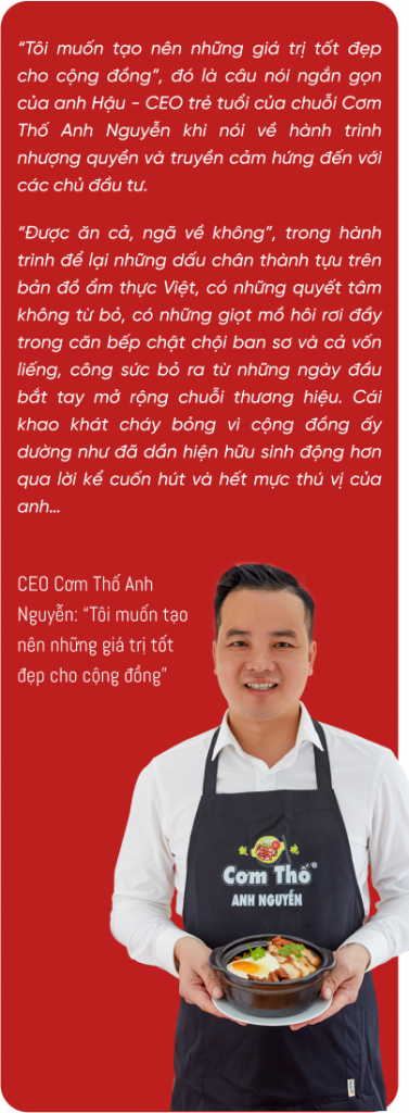 Trong quá trình xây dựng thương hiệu, điều gì khiến anh tâm đắc và cảm thấy hành trình nhượng quyền Cơm Thố Anh Nguyễn sẽ đem lại những tác động xã hội tích cực?