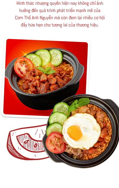 Với những trải nghiệm đồng nhất và chất lượng cao tại mọi cơ sở, Cơm Thố Anh Nguyễn luôn mong muốn mang đến giá trị về mặt tinh thần cho khách hàng, không chỉ là món ăn ngon mà còn là tình cảm gom vào trong từng thố cơm đắt khách. Thương hiệu cũng hy vọng khách quen của mình sẽ có một địa điểm gần hơn để thưởng thức món Cơm thố yêu thích. Bên cạnh những cống hiến cho khách hàng, hình thức nhượng quyền còn tạo ra cơ hội tăng thêm thu nhập, đem đến môi trường kinh doanh tiềm năng cho các chủ đầu tư, giúp họ có công ăn việc làm và tự mình làm chủ chỉ với số vốn từ 100 - 150 triệu đồng. Cho đến thời điểm hiện tại thì các chuỗi nhượng quyền của Cơm Thố Anh Nguyễn đều đang kinh doanh ổn định, trộm vía doanh thu ở mỗi cơ sở đều tăng trưởng tốt *cười*.