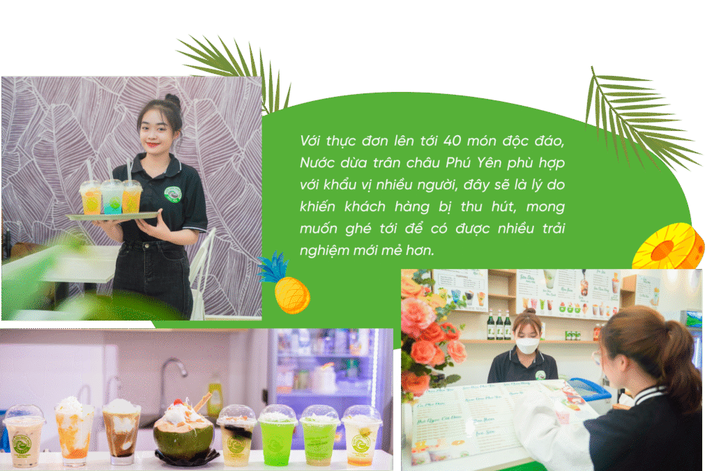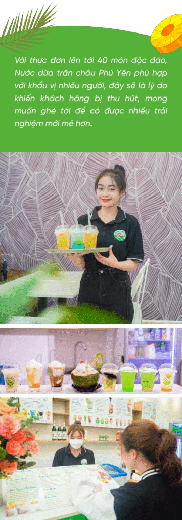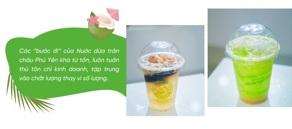 nCác “bước đi” của Nước dừa trân châu Phú Yên khá từ tốn, từ những cái đơn giản nhất như tìm hiểu về đồ uống để update thực đơn, gần như thương hiệu phải trải qua quy trình kỹ càng, nghiêm ngặt.