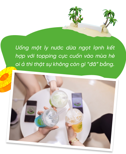 nThoạt đầu, chỉ mới nghĩ tới việc trên tay thưởng thức một ly nước dừa mát lịm kèm thêm trân châu giòn giòn, sần sật đã phần nào giúp tôi được xoa dịu, xóa tan đi cái nóng nực, bức bối mùa hè.