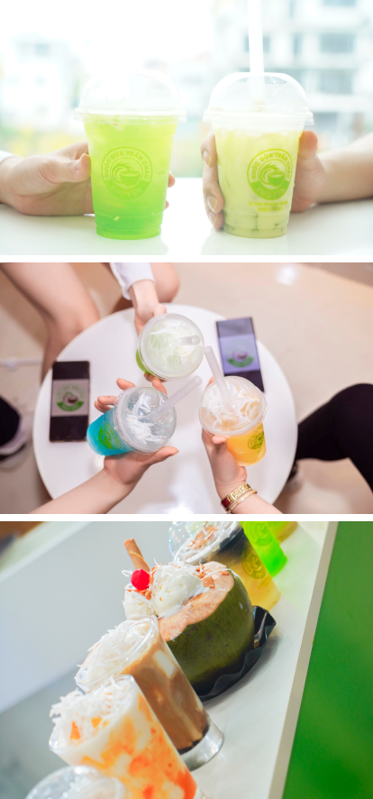 nCác món trên thực đơn hiện tại đều đã được thương hiệu thử nghiệm trước đó, test giữa 200 khách hàng để lấy ý kiến số đông, đánh giá về chất lượng. Hương vị các đồ uống đều có chỉnh lý theo vùng miền, nhập gia thì tùy tục mà. Chẳng hạn, miền Nam nóng quanh năm và ưa ngọt hơn miền Bắc tầm 30%, nên sản phẩm trong Nam sẽ luôn ngọt và nhiều đá hơn. Còn miền Bắc thì họ chuộng vị thanh ngọt, ít đá hơn. Vào mùa đông tại miền Bắc, thương hiệu cũng luôn luôn không ngừng phát triển những món đồ uống đặc trưng để phù hợp hơn với khí hậu. Nước dừa khi được đi kèm với các loại topping, bản chất sẽ giúp tăng thêm hương vị và nó rất dễ “gây nghiện” cho khách hàng.