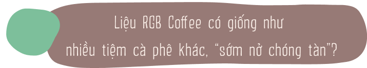 Lý do khiến RGB nay thưa khách hơn, đó là bởi hầu hết những vị khách vãng lai ngày nào đã trở thành những gương mặt “đóng họ” trung thành rồi. Họ cũng không thường ghé RGB Coffee để chụp ảnh nữa, thay vào đó là gọi cà phê đóng chai về nhà. Cũng phải thôi, ngày nay ai cũng bận rộn cả. Thế nhưng tin chắc rằng nhiều người giống tôi, khi muốn tìm một nơi nào đó để thưởng cà phê, RGB Coffee sẽ là lựa chọn hàng đầu.