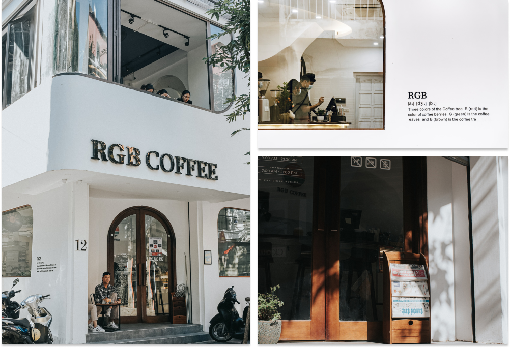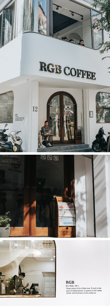 RGB Coffee vẫn với dáng vẻ tinh khôi đó, thu gọn mình ở một góc phố. Thế nhưng người xung quanh lúc nào cũng bị hút ánh nhìn bởi tone trắng nền nã cùng với những ô cửa gỗ nhiều màu. Vừa đẩy cửa bước vào, tôi đã cảm nhận được hương cà phê nồng nàn, lấp đầy khoảng không tiệm. Không còn nhiều khách vãng lai tìm đến RGB chỉ để chụp hình nữa, thay vào đó là những gương mặt hình như đã quá quen tại đây. Người làm việc, người học bài, người dăm ba câu chuyện, người ngồi ngắm đường phố... bên cạnh là tách cà phê ấm nóng và một tâm hồn thảnh thơi.