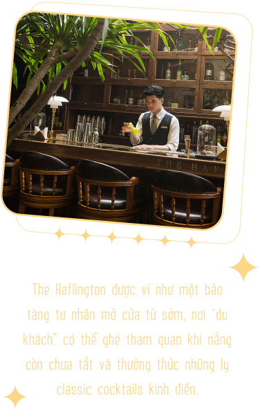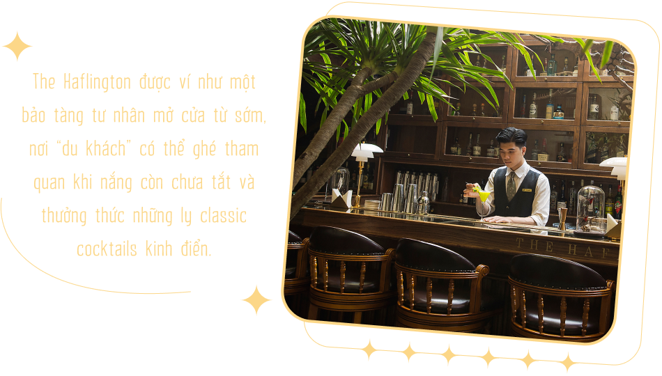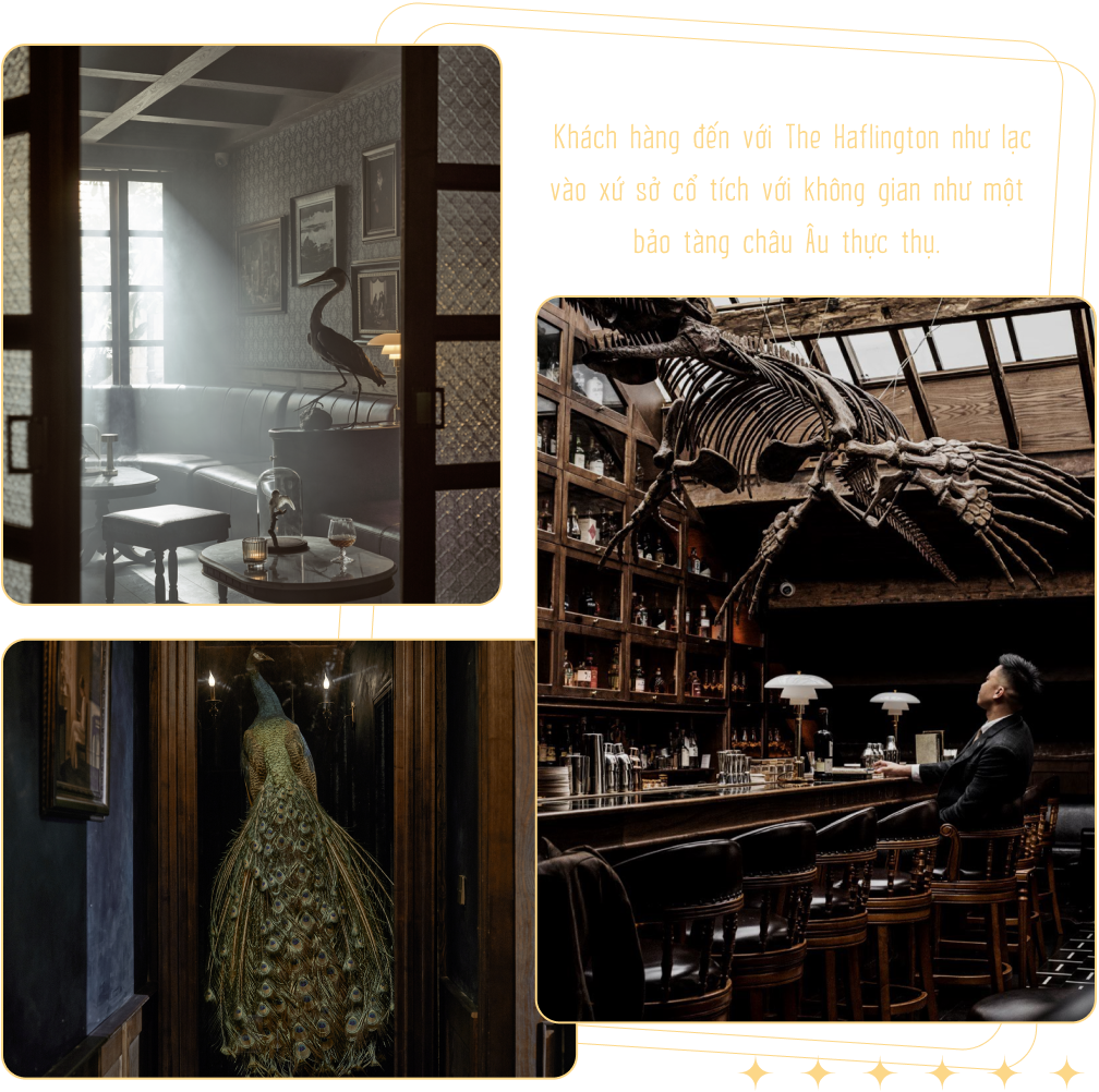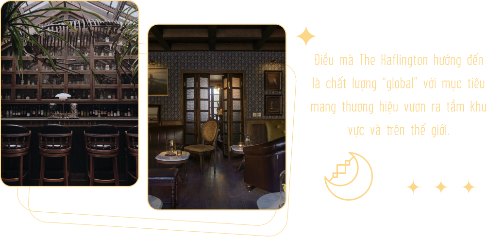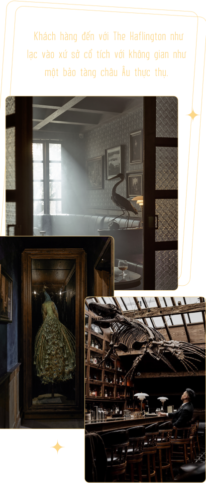 Không sặc sỡ phô trương như những quán bar khác, The Haflington khoác lên mình một thiết kế không gian huyền bí tựa như những bảo tàng cổ kính tại Anh Quốc xa xôi. Phải chăng đó là cách tỏa sáng riêng của The Haflington? Vì sao các anh lại chọn phong cách này?