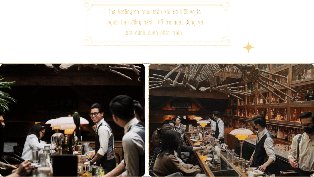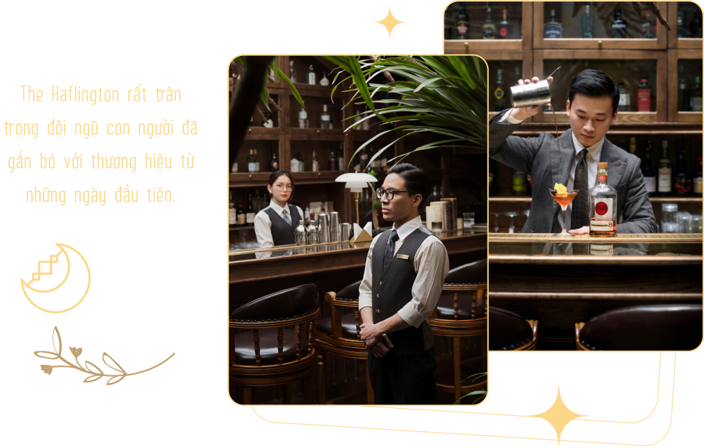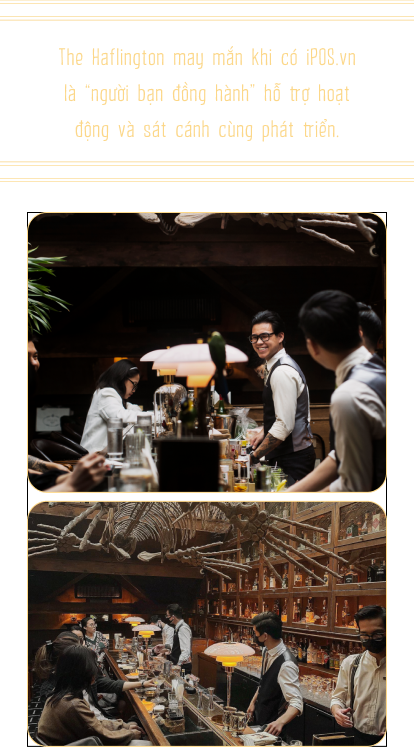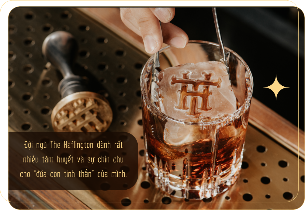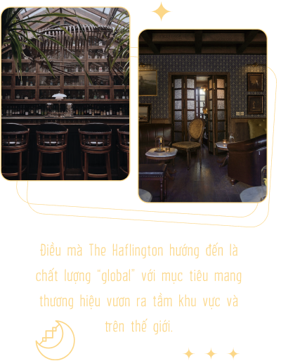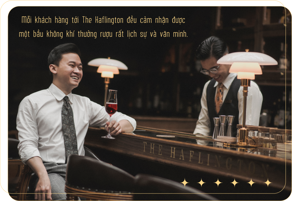 Hơn thế nữa, The Haflington được ra đời rất tình cờ bởi một đội ngũ founder “yêu thích cái đẹp”. Mọi người muốn tạo ra một không gian cocktail bar thực sự ấn tượng trên mọi phương diện từ kiến trúc, sản phẩm cho tới trải nghiệm dịch vụ. Đội ngũ founder đã ấp ủ dự án này trong khoảng 4 - 5 tháng, trăn trở rất nhiều từng chi tiết đến tổng thể. Lúc mới mở The Haflington, anh và các cộng sự cũng gặp không ít khó khăn. Tuy nhiên, nhờ mỗi người có một thế mạnh và kinh nghiệm riêng về các lĩnh vực như kinh doanh, pha chế, quản lý,... nên có thể bù đắp, hỗ trợ cho nhau khá ăn ý.