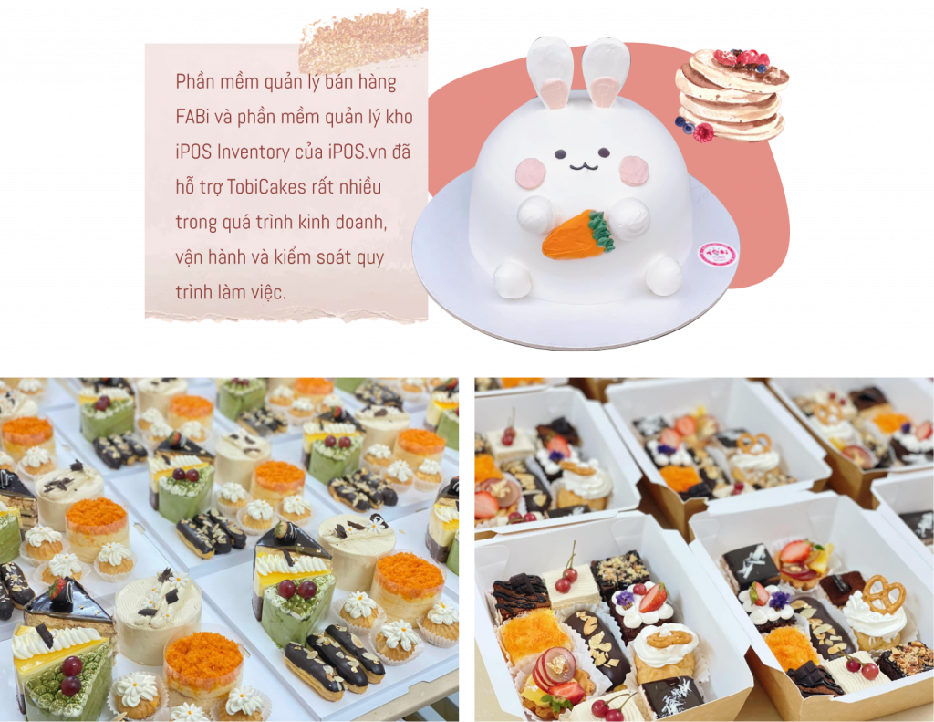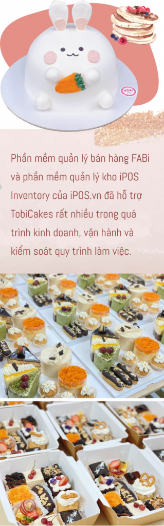 Về bên bán lẻ thì hiện tại TobiCakes đang sử dụng phần mềm quản lý bán hàng FABi và phần mềm quản lý kho thông minh iPOS Inventory của iPOS.vn. Chị thấy cả hai phần mềm đều hỗ trợ rất tốt cho nhân viên của tiệm trong việc kiểm soát doanh số và lợi nhuận hàng ngày; có nhiều báo cáo chi tiết về tình hình hàng hóa bán ra, số lượng các loại bánh bán chạy, tình hình tồn - xuất của nguyên vật liệu theo real-time,...