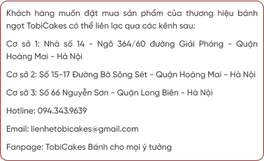 Trong khi đó, TobiCakes thì vẫn giữ nguyên một mức giá chung từ trước tới giờ chứ không hạ giá chạy theo đối thủ. Các khách quen, bạn hàng,... luôn rất tin tưởng vào chất lượng của TobiCakes, họ sẵn sàng bỏ qua những chỗ khác rẻ hơn để lựa chọn TobiCakes đầu tiên khi mua hàng. Kể lại thì đơn giản chỉ trong một câu nhưng quá trình làm sao để xây dựng niềm tin cho khách như thế không hề dễ. Khách phải mua nhiều lần và lần nào cũng nhận lại được sản phẩm tốt thì mới dành cho TobiCakes tình cảm như vậy.