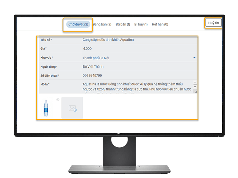 Bước 2: Tạo thông tin rao vặt– Để tạo mới tin rao vặt > Chọn Tạo tin rao vặt.– Khai báo các thông tin như: Tiêu đề, giá bán, khu vực, mô tả sản phẩm, thông tin người đăng.- Sau đó, chọn Lưu và đồng thời hiển thị trạng thái Chờ duyệt.– Sau quá trình kiểm duyệt, tin rao vặt sẽ hiển thị trạng thái Đã duyệt hoặc Đã hủy.