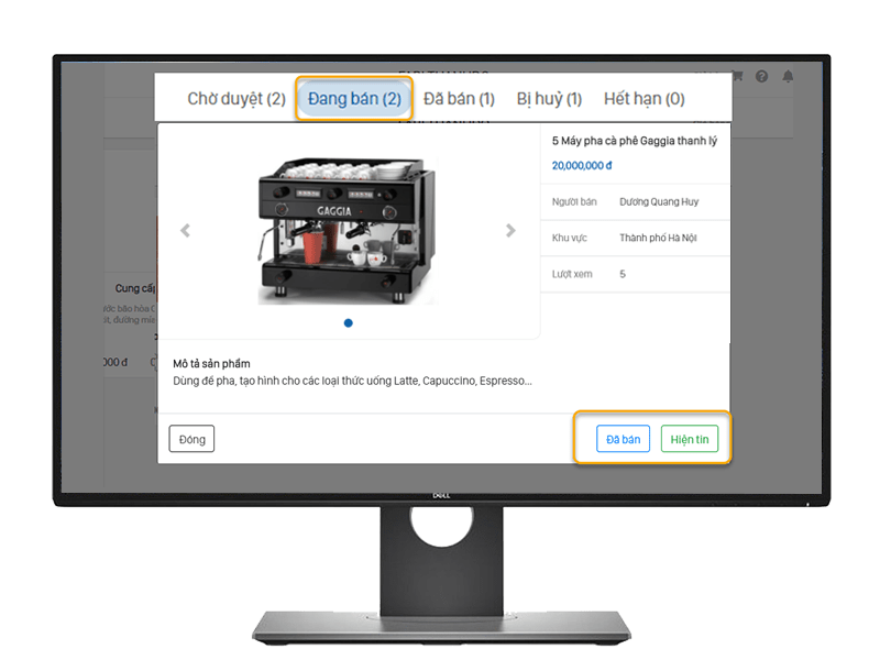 Đang bán: Các tin rao vặt đã được Duyệt và hiển thị trên mục Tin rao vặt của các khách hàng khác. Tại đây có thể kiểm tra số lượt xem tin, cập nhật Đã bán để ẩn tin nếu đã bán hoặc chọn Ẩn tin nếu không muốn tiếp tục đăng tin.