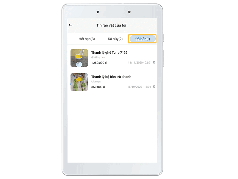 Đã bán: Trạng thái tin rao vặt đã bán thành công.
