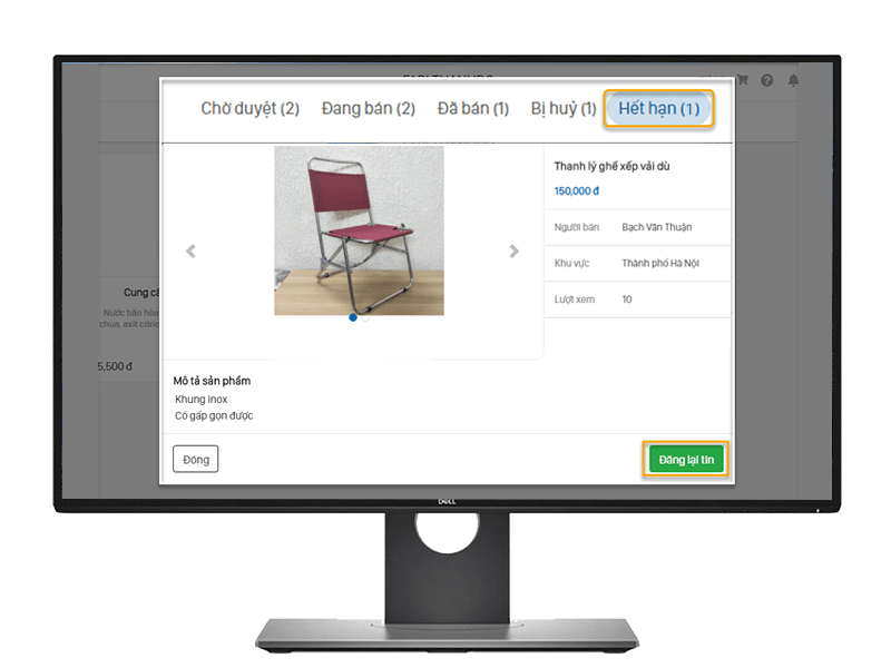 Hết hạn: Mỗi một tin được cho phép hiển thị mặc định trên Tin rao vặt 7 ngày kể từ ngày được duyệt. Hết thời hạn trên tin sẽ tự động chuyển vào mục Hết hạn và không hiển thị trên Tin rao vặt. Muốn đăng lại tin bạn vào chọn tin và chọn Đăng lại tin. Khi đó, tin sẽ tự động đăng lại và hiển thị trong mục Đang bán mà không cần kiểm duyệt lại.