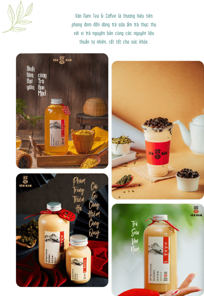Cụ thể, sản phẩm của Vân Nam Tea & Coffee từ dòng trà sữa đến trà ủ lạnh hay trà trái cây đều sử dụng 3 loại danh trà cổ truyền trong thập đại danh trà Trung Hoa là Hồng Trà Cổ Thụ Vân Nam, Trà Oolong Thiết Quan Âm, Trà Xanh Long tỉnh Hồ Tây. Vị đắng chát nhẹ đặc trưng, hậu ngọt, điểm xuyết trên nền hương tươi mát đem đến cảm giác tĩnh lặng và khoan khoái vô cùng.