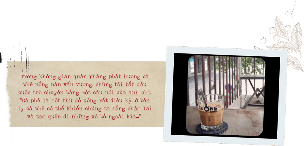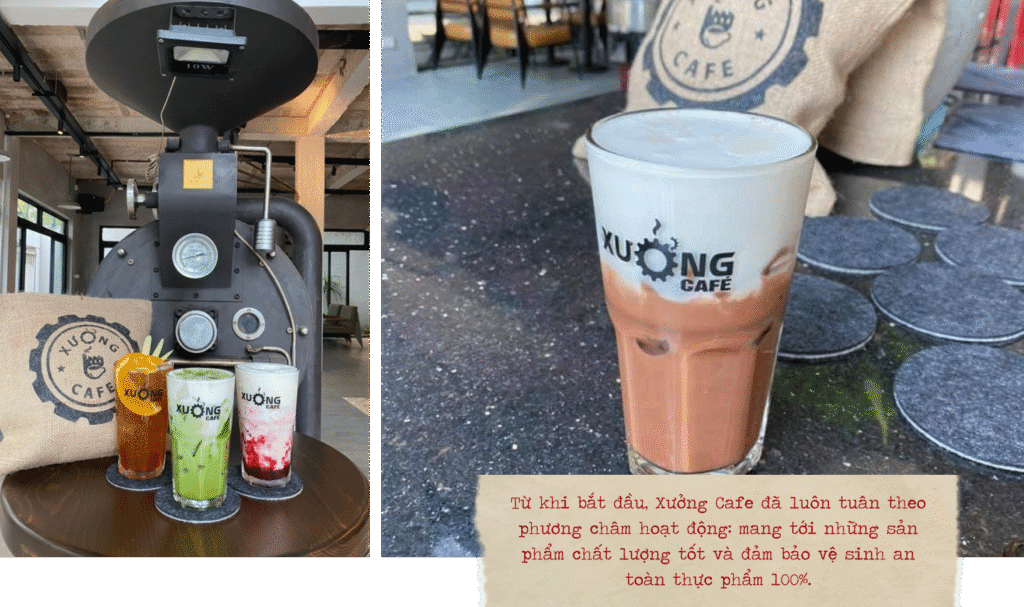 nCâu slogan này cũng đã thôi thúc tôi kết nối với vợ chồng chị Thu - hai nhà sáng lập và điều hành của hệ thống Xưởng Cafe để tìm hiểu thêm về thương hiệu. Ngay từ giây phút gặp mặt đầu tiên, anh chị đón tôi bằng những nụ cười thân thiện và một cốc cà phê nóng ấm - thức uống đã làm nên tên tuổi cho Xưởng Cafe bấy lâu. n